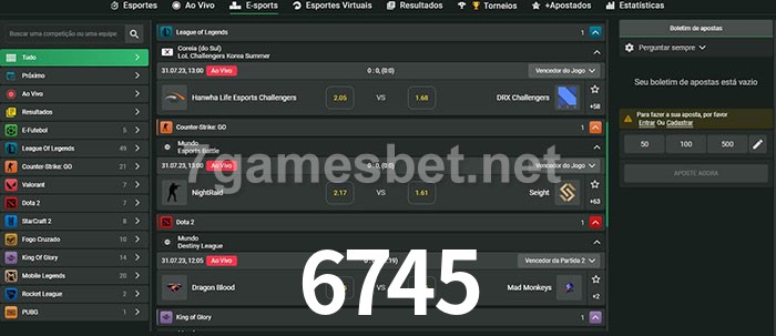 A aposta 6745 oferece aos jogadores a experiência mais conveniente de apostas em eSports!